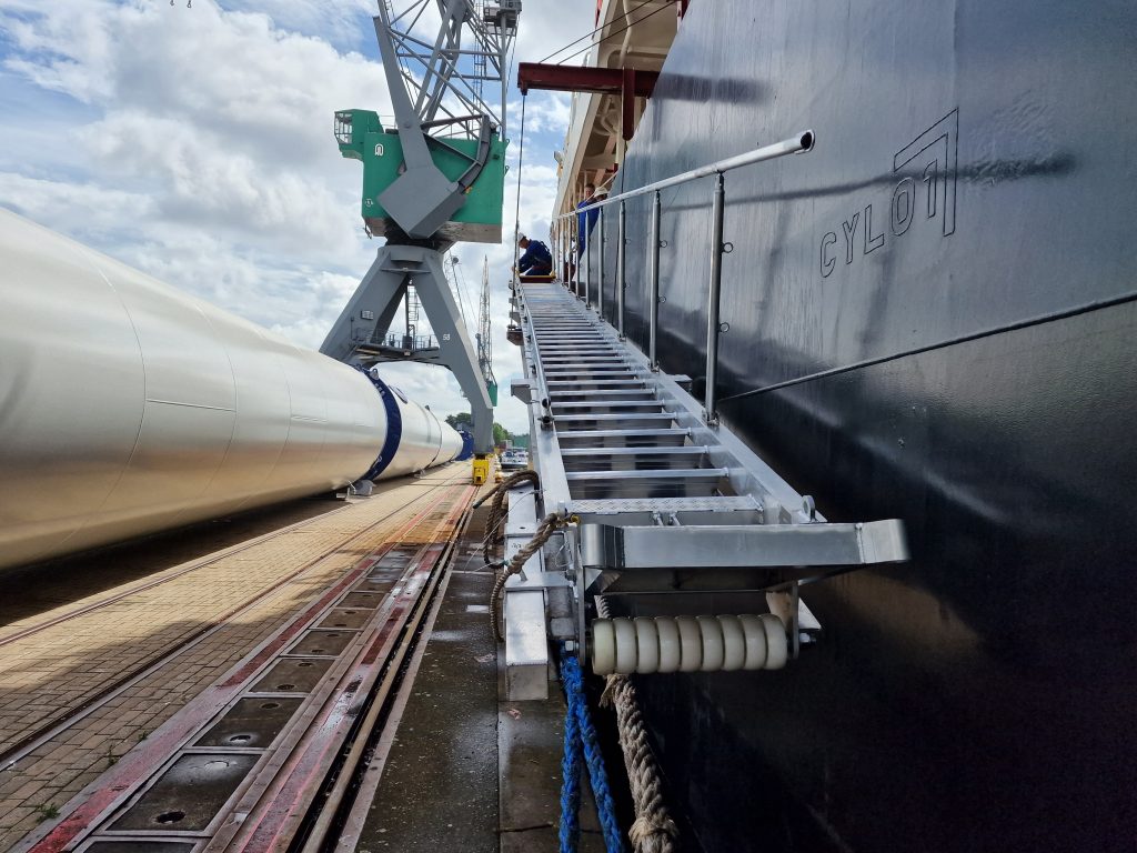 External folding stairway for access from ashore or from tender alongside.