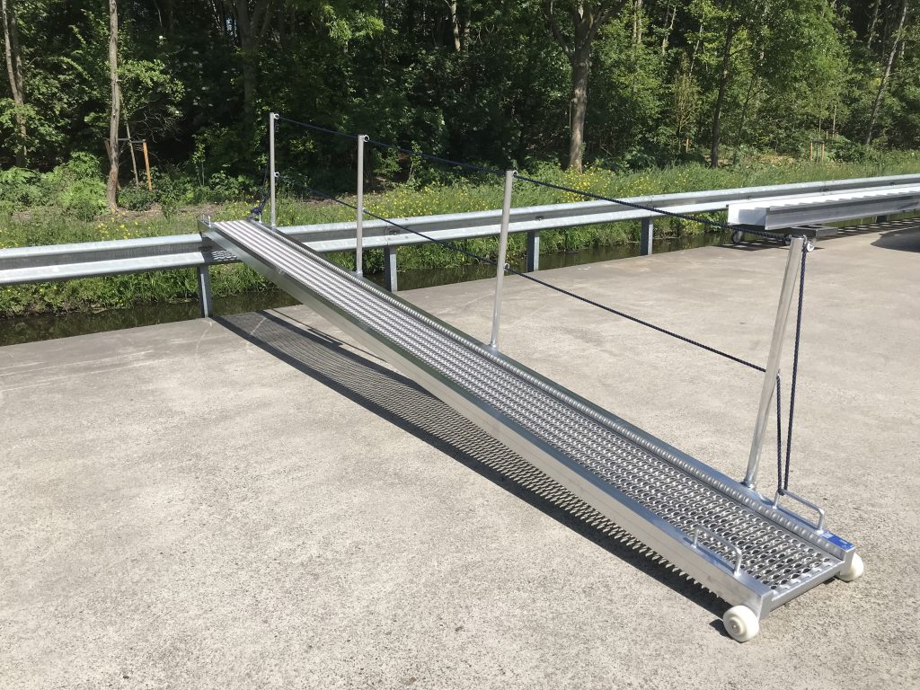 On the basis of the current standard NEN 526 gangways we also have developed a major quality and lightweight ramp for inland navigation. This product is always on stock and quick delivered.