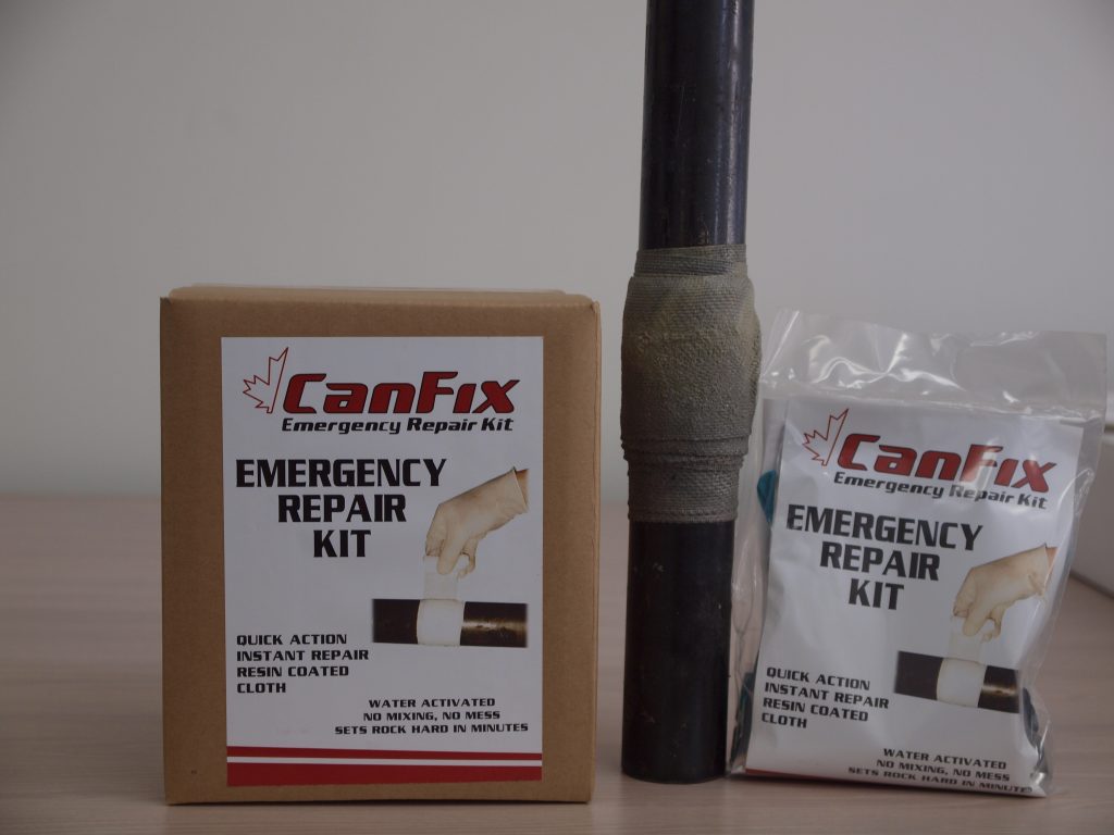 CanFix Emergency Repair Kit is a complete system for making emergency repairs to a wide variety of pipe materials. CanFix consists of a patented, fiberglass cloth impregnated with water-activated resin that sets in minutes with no measuring, mixing, or messy cleanup. Each kit contains a roll of CanFix cloth, a ‘two part epoxy’ for filling and sealing, a pair of latex gloves, and complete instructions for use.